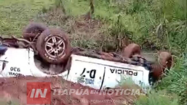 INTENSA LLUVIA PROVOCÓ LA PÉRDIDA DE CONTROL DEL MÓVIL POLICIAL; NO HUBO HERIDOS
