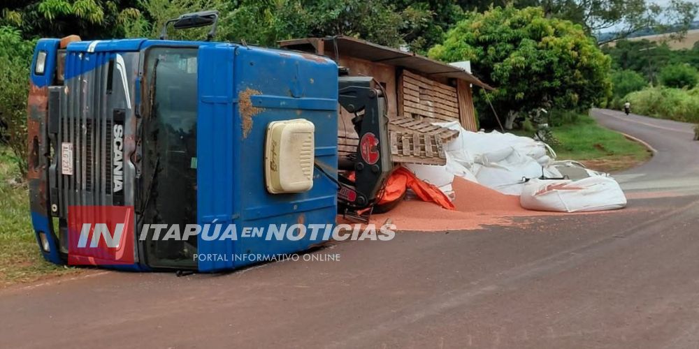 CAMIÓN DE GRAN PORTE VOLCÓ EN ZONA DE ITAPÚA POTY