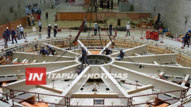YACYRETÁ REALIZA COMPLEJA MANIOBRA PARA DESMONTAR CRUCETA SUPERIOR DE LA UNIDAD 01