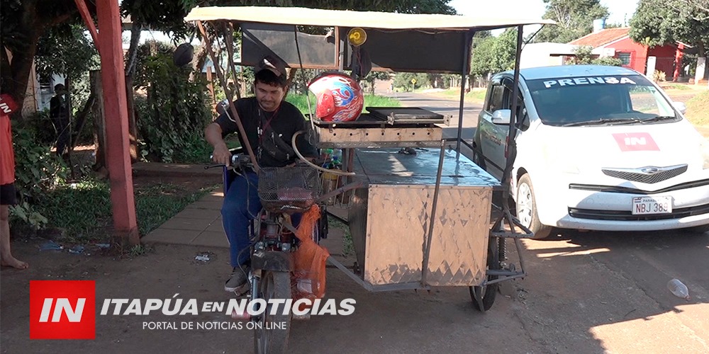 Ante esta situación, sus amigos le fabricaron una motocicleta adaptada a un carro, que cuenta con parrilla y conservadora donde vende asaditos y bebidas, también se dedica a vender otro tipo de productos al costado del camino que une Itá Paso con Santo Domingo. Aunque es difícil y peligroso conducir en su estado, se adoptó rápidamente a su motocicleta que se convirtió en su principal herramienta de trabajo.