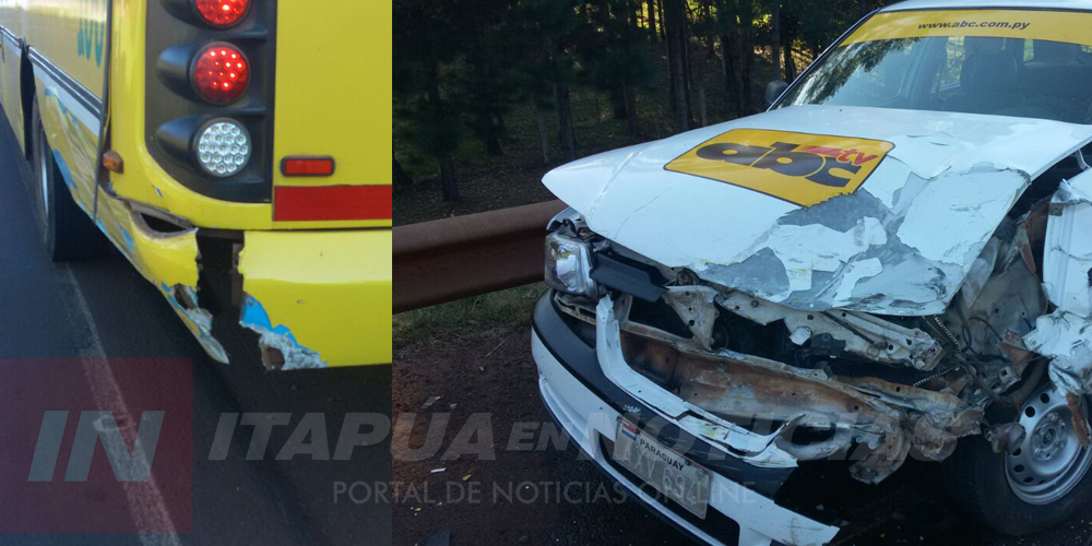 Un accidente de tránsito se registró en la mañana de este martes sobre la Ruta N° 1 en zona de San Juan del Paraná, donde el móvil de prensa de ABC impactó contra una unidad del transporte público, dejando solo daños materiales.