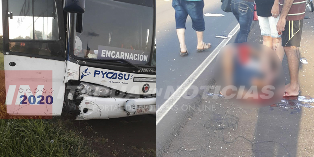 Estuvieron involucrados un ómnibus de la Empresa Pykasú y una motocicleta que era conducida por Jorge Vera (25), domiciliado en el barrio San Francisco de este municipio. Según los primeros reportes, el mismo habría perdido el control de su biciclo yendo a chocar de manera frontal contra el ómnibus.