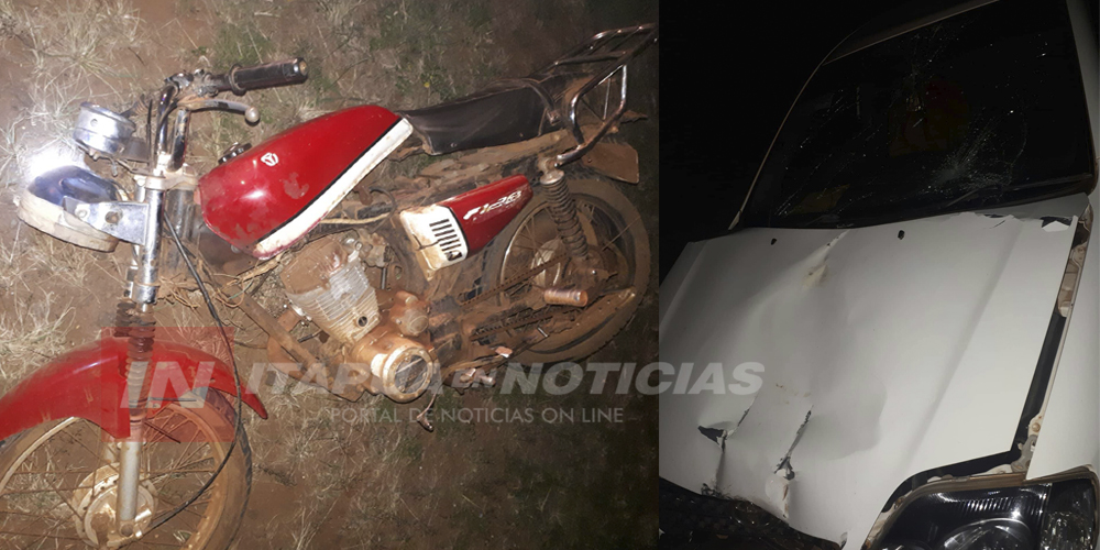 Estuvieron involucrados un automóvil Toyota Corolla, guiado por Mitsuyoshi Misogiwa (67) de nacionalidad japonesa y una motocicleta Kenton, guiada por Javier Antonio Olmedo y Fermín Ignacio González ambos domiciliados en Arroyo Frazada, distrito de San Pedro del Paraná quienes resultaron lesionados.