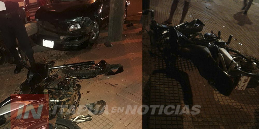 Intervinientes de la Comisaría Segunda indicaron que la motocicleta circulaba sobre la Avda. Lopez y repentinamente fue impactada por el automóvil de la marca Toyota, quien impactó a su vez contra la parte trasera del otro rodado que estaba estacionado subiendo parte del vehículo sobre la vereda. Al llegar la Policía convocó a Bomberos Voluntarios de la ciudad de Encarnación quienes trasladaron los motociclistas al Hospital Regional de Encarnación (HRE).
