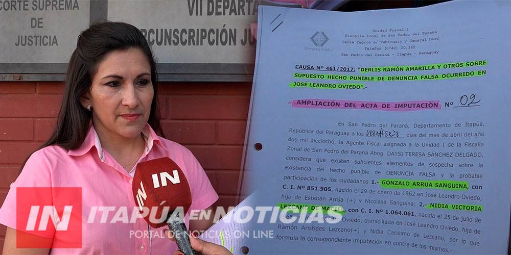 Así expresó Del Pilar Vázquez, actual Intendente de José Leandro Oviedo al hablar sobre la reciente ampliación de la imputación en el caso de Denuncia Falsa contra Gonzálo Arrúa Sanguina y Nidia Victoria Lezcano (Concejal y Ex Concejal distrital respectivamente), quienes habrían atestiguado falsamente contra la misma.