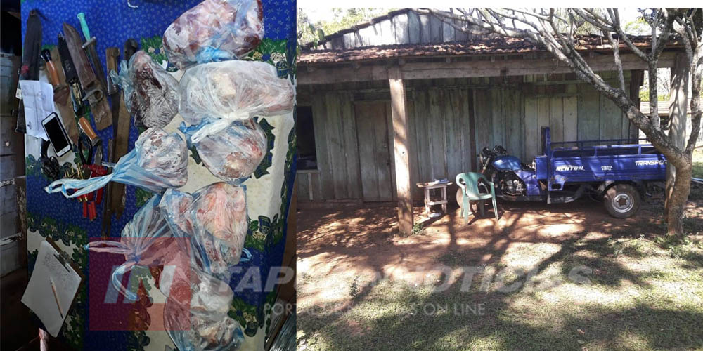 Del lugar fueron incautados: un revólver calibre 32, sin marca y número de serie visibles, varios cartuchos de armas de fuego de diferentes calibres, cuatro rollos de alambre liso una romana de 25 kg marca Pocket, dos pinzas, seis cuchillos de carnicería, dos machetes, una tenaza, un lazo de cuero, un arreador de cuero con cabo de madera, un aparato celular marca Samsung J5, una moto carro marca kenton, y once kilogramos de carne vacuna.