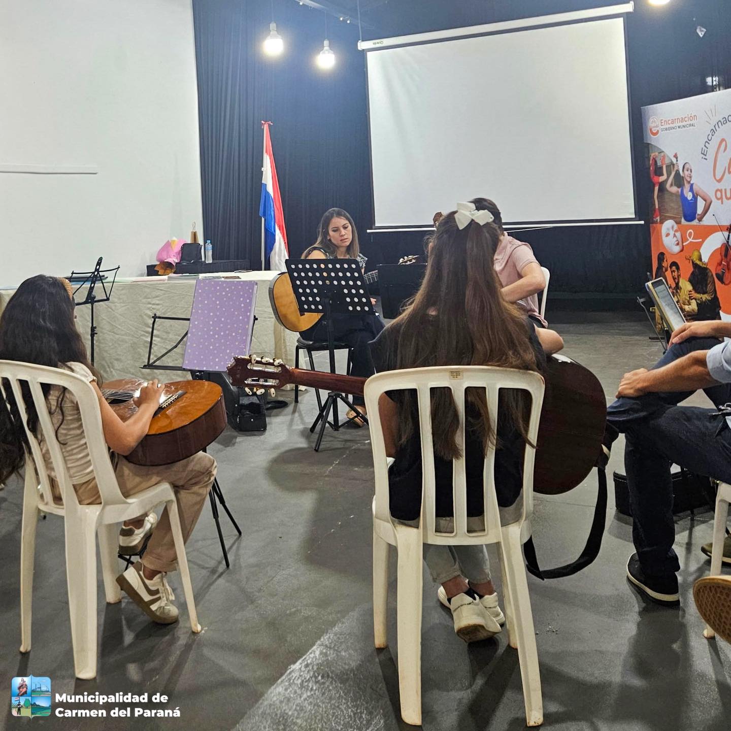 Alumnas de la Escuela de Guitarra Clásica de la Municipalidad de Carmen del Paraná participaron de un enriquecedor MasterClass de guitarra, a cargo de la profesora Angélica Rodríguez, realizado en el Centro Municipal de Arte (CEMA) de la ciudad de Encarnación.