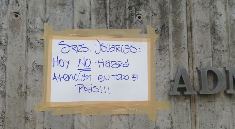 “Señores usuarios, hoy no habrá atención en todo el país”, dice el cartel colgado en el portón de acceso principal a la sede central de la ANDE, sobre la Avda. España y Padre Cardozo, hasta donde llegaron varias personas con la intención de pagar sus facturas y hacer reclamos de medidores o gestiones administrativa.