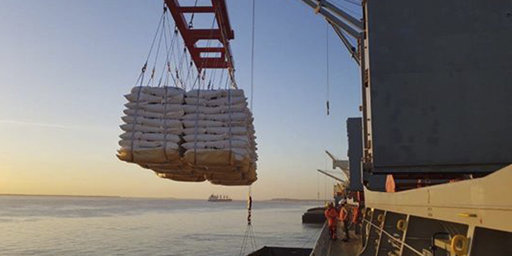 Para la exportación, 11 arroceras en total trabajaron en conjunto para embolsar el envío de bolsas de 50 kg cada uno.
