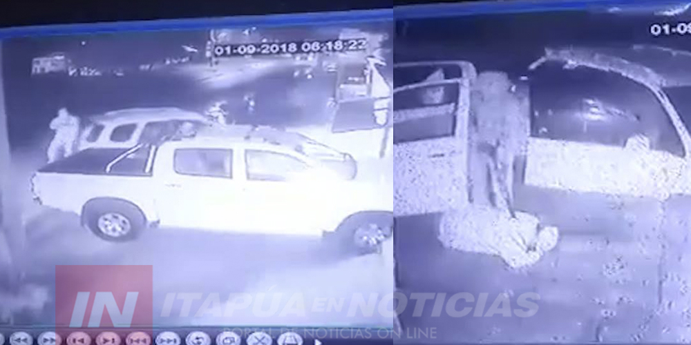 Según se observa en los videos de las cámaras de circuito cerrado, esta mañana siendo las 05:20 horas aproximadamente el señor Roberto Armoa, víctima del asalto, salió en compañía de su esposa Elsa Graciela Díaz frente a su vivienda ubicada sobre la calle Tupasy Rape en el barrio San Isidro de Encarnación para dirigirse a trabajar, siendo interceptado en ese mismo instante por el automóvil Toyota modelo Spacio, del cual descendieron 2 hombres fuertemente armados con escopeta en mano y exigieron a sus víctimas que les entreguen todo el dinero que llevaban consigo.