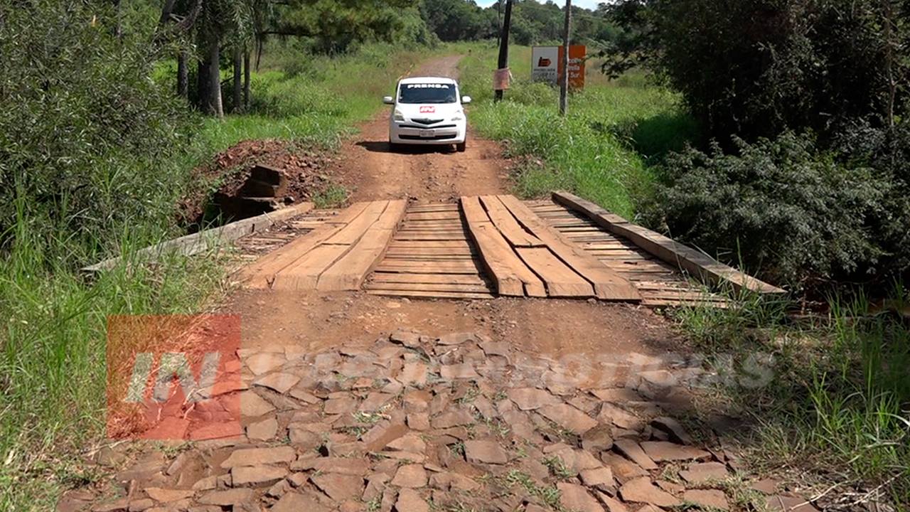 Un precario puente de madera es el que se debe atravesar para llegar al Barrio Sarita de Encarnación, el mismo cruza sobre el Arroyo Porã a escasos metros de la Ruta N° 6.