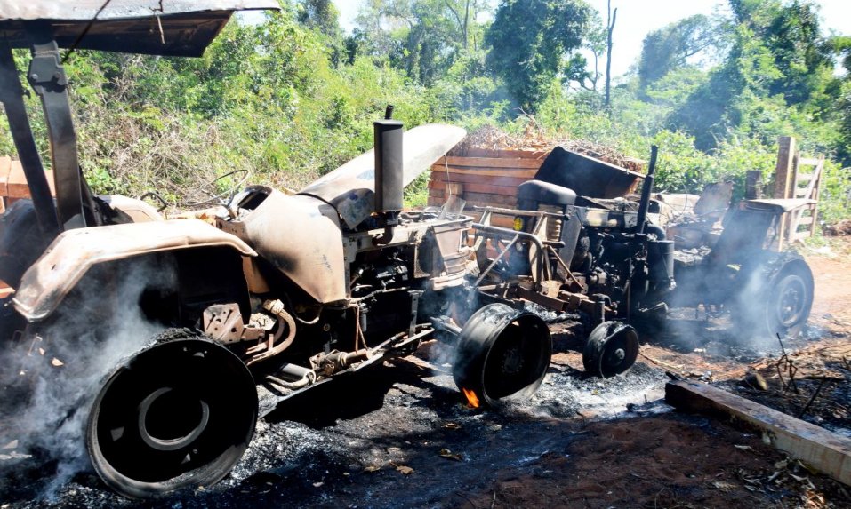 Los afectados manifestaron que mientras se alejaban escucharon varios disparos de armas de fuego y al darse vuelta vieron que los malvivientes prendieron fuego a algunas de las maquinarias retenidas, como un camión y un tractor.