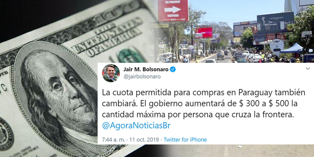 El presidente de Brasil, Jair Bolsonaro, anunció este viernes que aumentará de 300 a 500 dólares la cota de compra permitida por cada brasileño que cruce la frontera y realice transacciones comerciales en Paraguay.