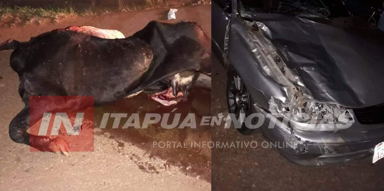 AUTOMÓVIL CHOCÓ CONTRA UNA VACA EN PLENO CENTRO DE CNEL BOGADO.