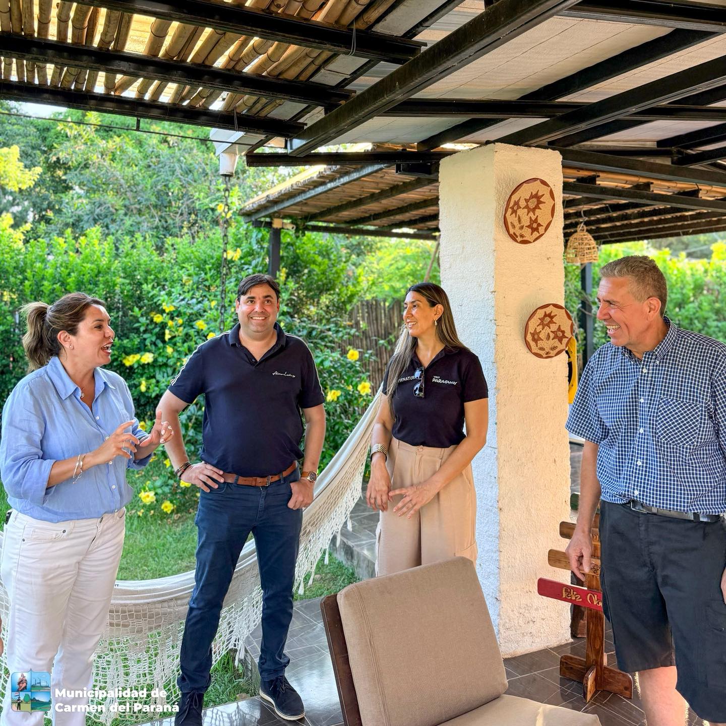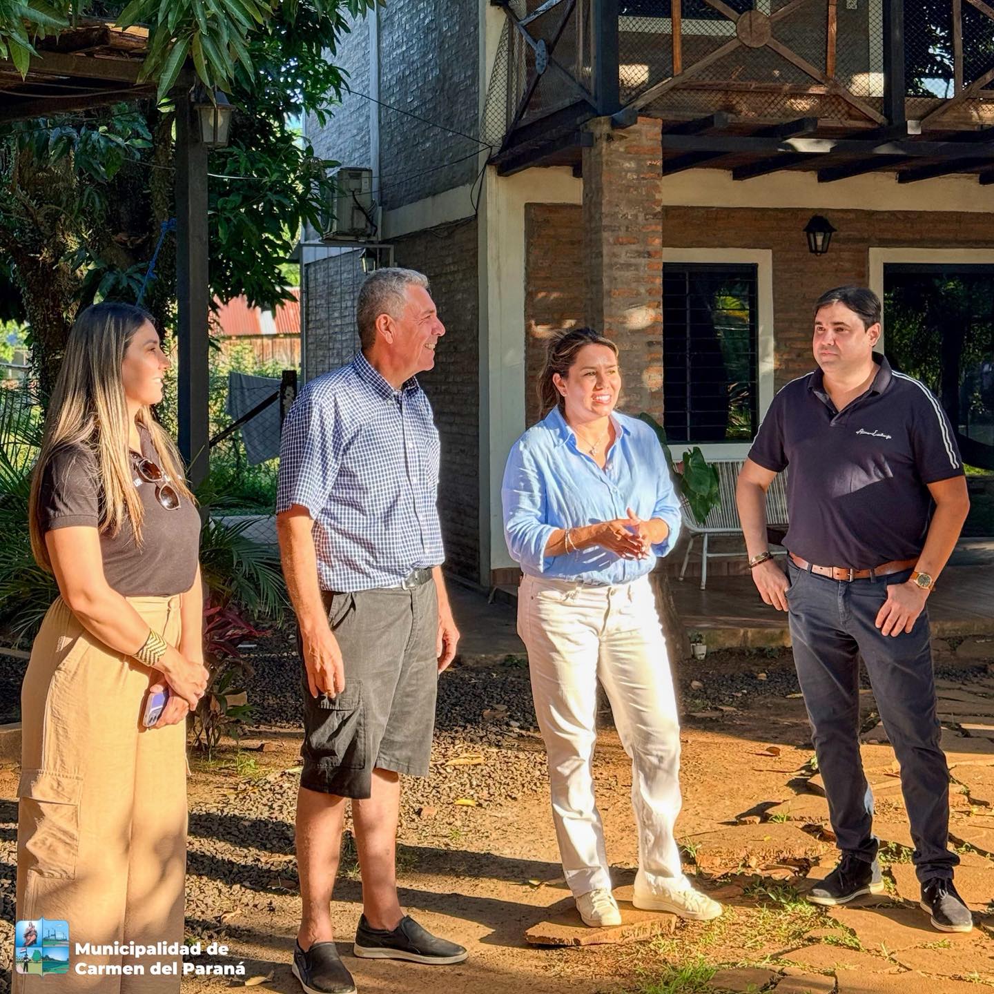 El Ejecutivo Municipal de Carmen del Paraná, Germán Gustavo Gneiting, acompañado de su esposa, la Dra. Liz Sanabria de Gneiting, recibió a la ministra de Turismo, Angie Duarte, quien realizó una visita institucional al distrito en el marco de acciones orientadas a fortalecer el desarrollo turístico local.