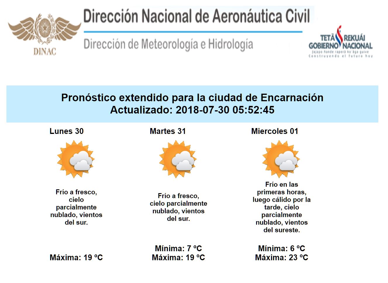En este inicio de semana, los últimos análisis indican un ambiente estable en gran parte del país, a excepción de algunos departamentos del extremo norte, en donde se prevén algunas lluvias dispersas durante la jornada, condición similar se prevé para mañana martes.