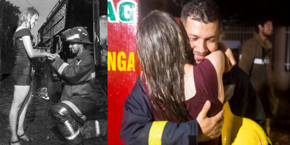 BOMBERO HACE EMOTIVA PROPUESTA DE MATRIMONIO A SU NOVIA