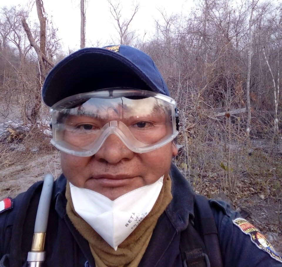 Adolfino Fargol de 38 años es un nativo de la parcialidad nivaclé de la comunidad Cayin o Clim de la localidad de Neuland, departamento de Boquerón. Él se unió a los voluntarios que combatieron el fuego en el Chaco.