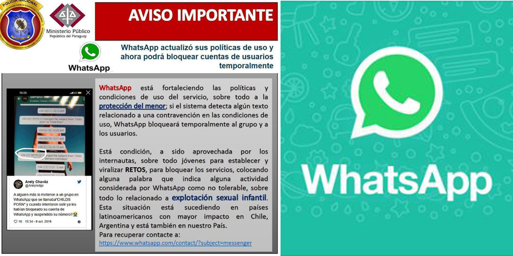 Ante la situación de que supuestamente administradores de distintos grupos de WhatsApp cambian el nombre del grupo, utilizando tales como: Pornografía Infantil, Child Pornography, Caldo de Pollo (por sus siglas en inglés) o algo similar en forma de broma o de chiste, cuyos integrantes desconocen las consecuencias del mismo, que es el bloqueo del servicio de telefonía móvil.