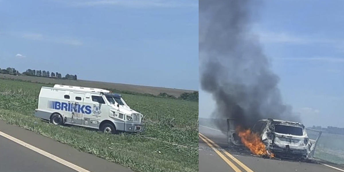 Un asalto tipo comando se produjo esta mañana en la ruta MS 156 entre la ciudad de Amambai y Caarapó, Brasil, distante a unos 100 kilómetros de Pedro Juan Caballero. Los delincuentes prendieron fuego a un vehículo para cubrir la fuga.