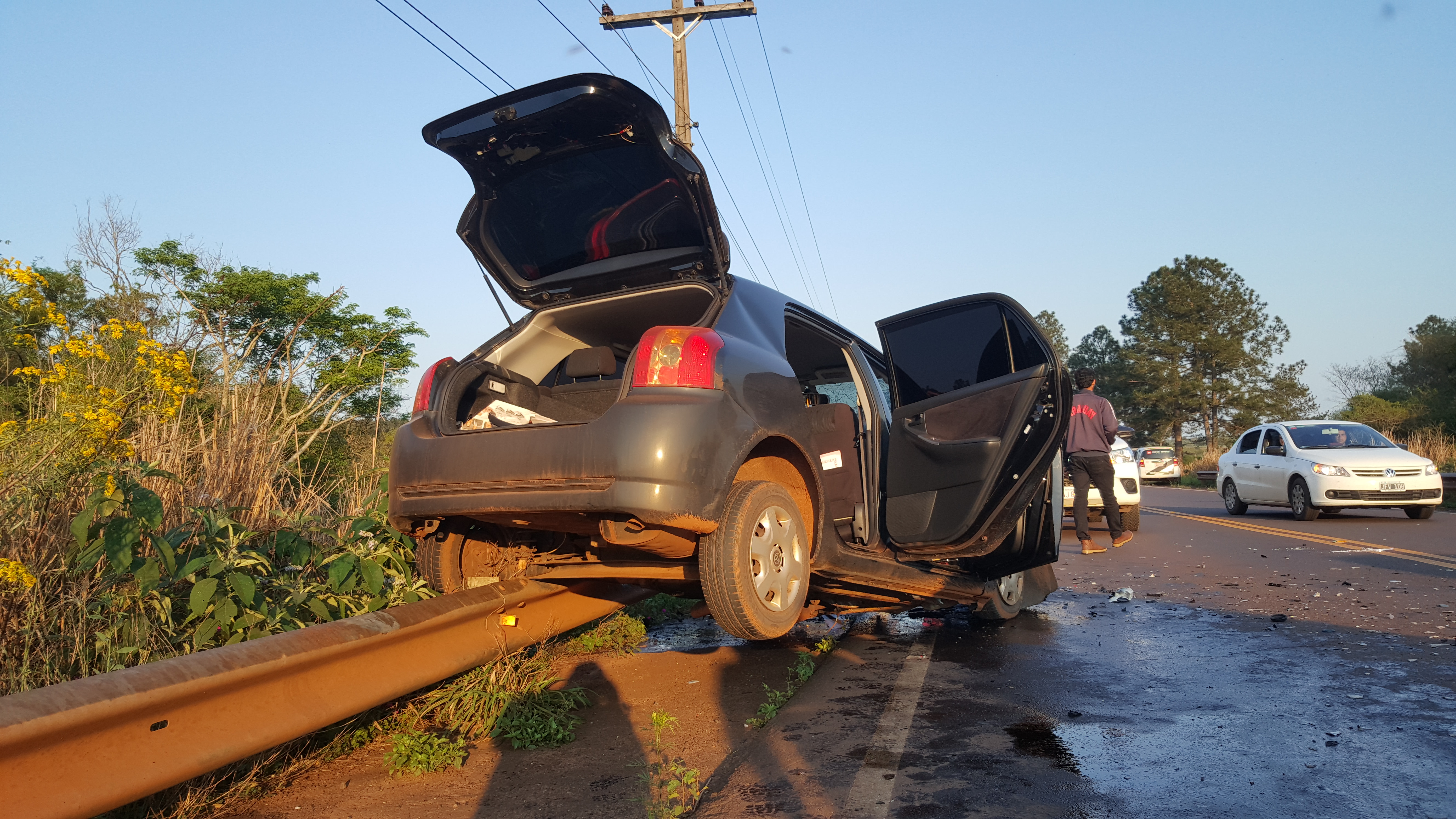 Por un la lado estuvo involucrado el automóvil Toyota modelo Allex BUX 548 al mando del periodista Antonio Rolín quien circulaba con dirección a Encarnación y por el otro el automóvil Toyota modelo Corolla con chapa HDG 973 cuya identidad aún no se confirmó.