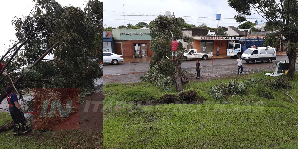 Integrantes del Cuerpo de Bomberos de Tomás Romero Pereira trabajaron arduamente para el despeje de una calle colateral tras la caída de un árbol en la ciudad de María Auxiliadora.
