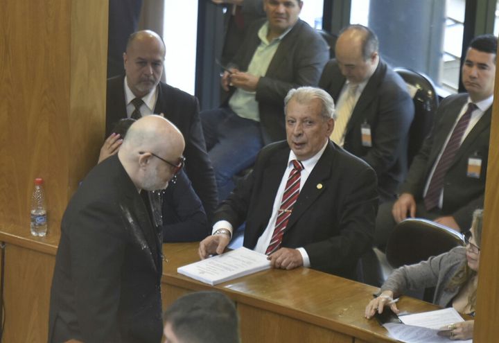 En un determinado momento, al subir Cubas las escaleras, se paró frente a Galaverna, quien le arrojó varios chorros de agua de una botella. El senador de Cruzada Nacional no reaccionó contra “Calé”.