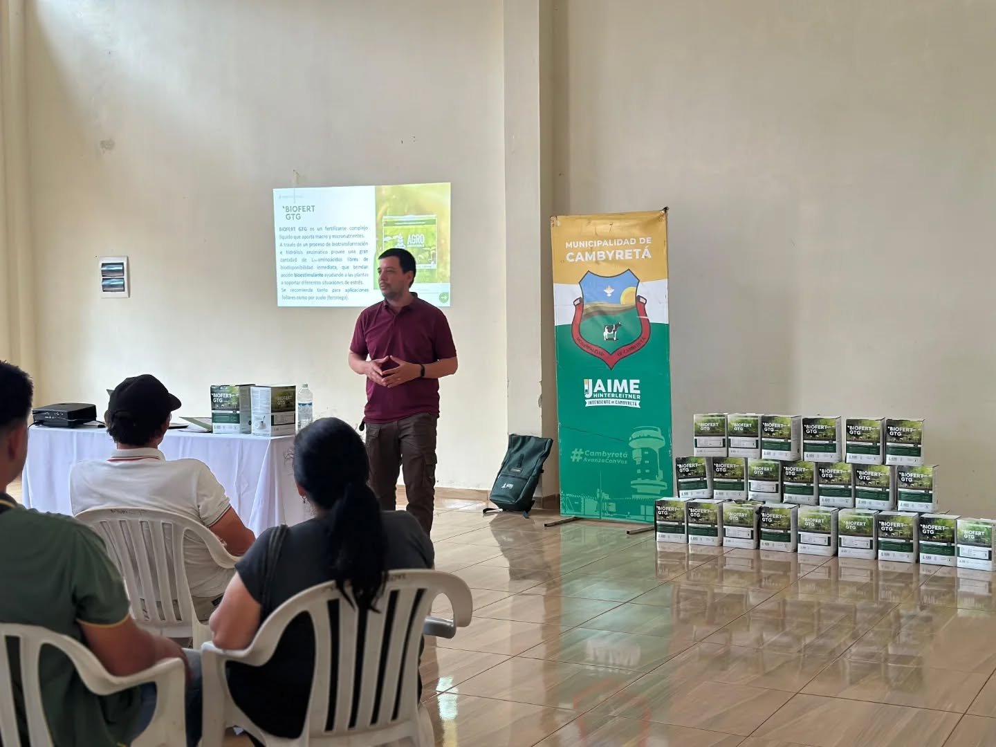 Durante la jornada se realizó la presentación y entrega de productos biofertilizantes, con el objetivo de promover prácticas agrícolas más sostenibles y saludables. Más de cincuenta productores participaron del encuentro y recibieron estos insumos como apoyo directo para mejorar el rendimiento de sus cultivos, reduciendo el uso de productos químicos y contribuyendo al cuidado del suelo y del ambiente.