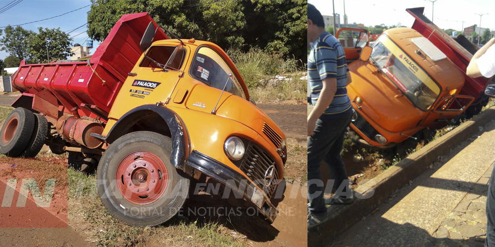 Un camión Tumba de una empresa constructora terminó en una cuneta de la Ruta N° 1 en la mañana de este viernes.