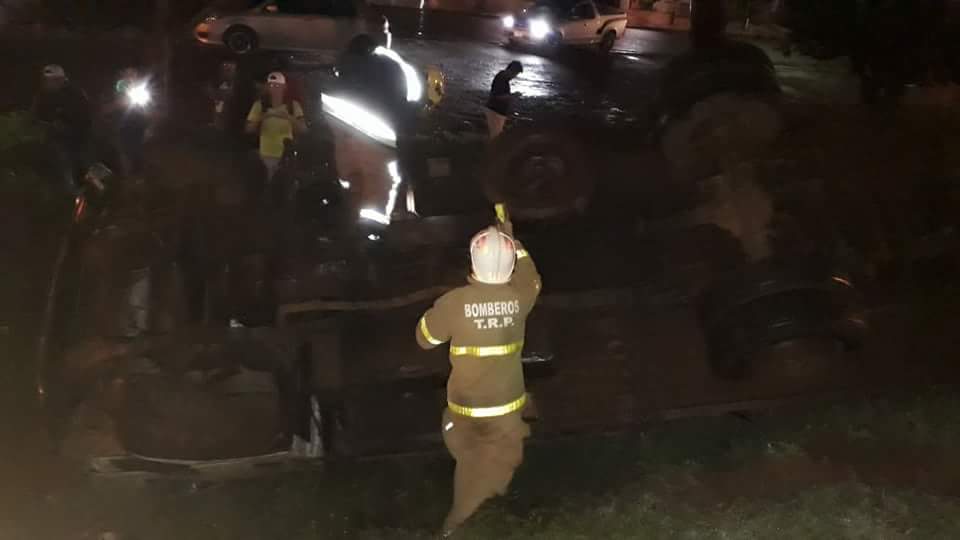 Integrantes del Cuerpo de Bomberos Voluntarios de TRP acudieron de inmediato logrando asistir al conductor y trasladarlo hasta un centro asistencial con aparentes daños menores