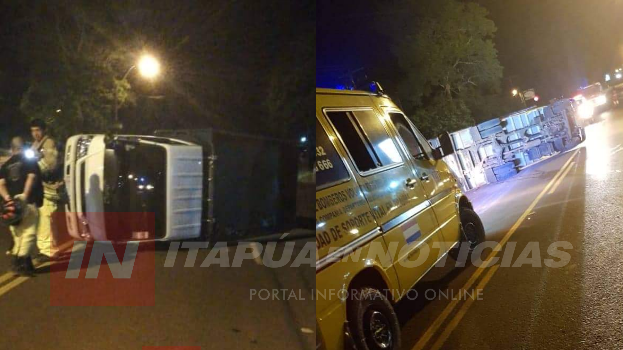 Un pequeño camión volcó hace instantes a la altura del km 37 en el distrito de Hohenau. El mismo estaba al mando de Óscar Insaurralde oriundo del distrito de Jesús de Tavarangue.