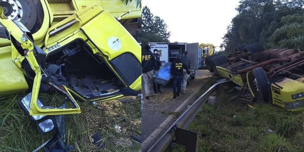 Un trágico accidente ocurrió en la mañana de hoy en la BR 282, en el Distrito de Juvencio. Un camión, chapa de Paraguay, salió de la pista y cayó cargado de maíz.