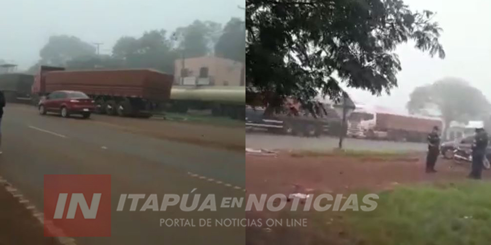 Camioneros organizados en varios gremios bloquean en forma intermitente las rutas 6 y 7 a la altura del km 30 en el distrito de Minga Guazú departamento de Alto Paraná.