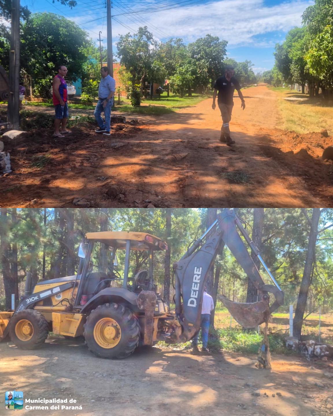 La Municipalidad de Carmen del Paraná informó el inicio de los trabajos de empedrado en el barrio Graneros, específicamente en la zona de Loma Clavel sobre la calle Paraguay.
