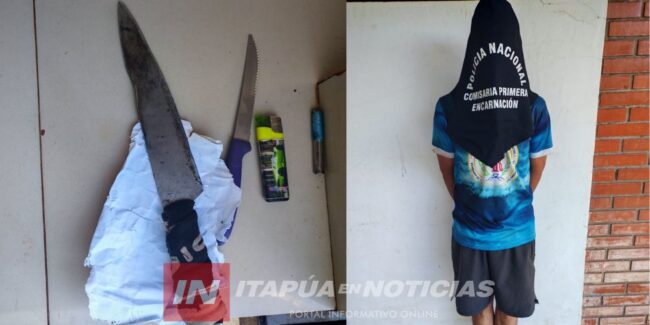 EL SUJETO OPUSO RESISTENCIA A LA INTERVENCIÓN POLICIAL. DE SU PODER, SE INCAUTARON DOS ARMAS BLANCAS.