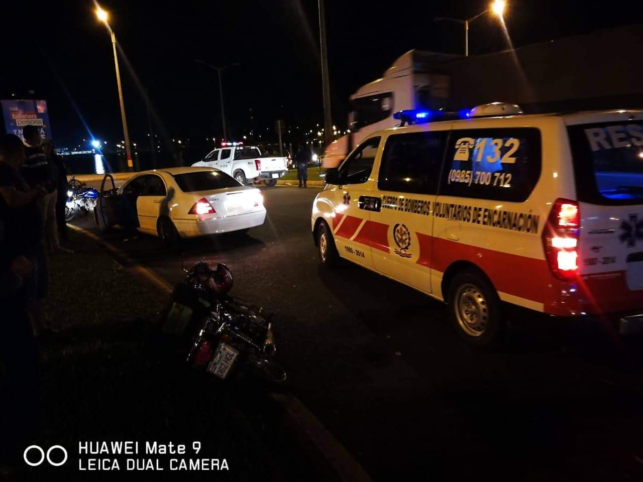 Según informe de la Policía Municipal de Tránsito, el conductor aparentemente chocó contra el cordón de la rotonda ubicada en el lugar y en consecuencia cayó al pavimento asfáltico sufriendo lesiones de consideración a la altura de la cabeza