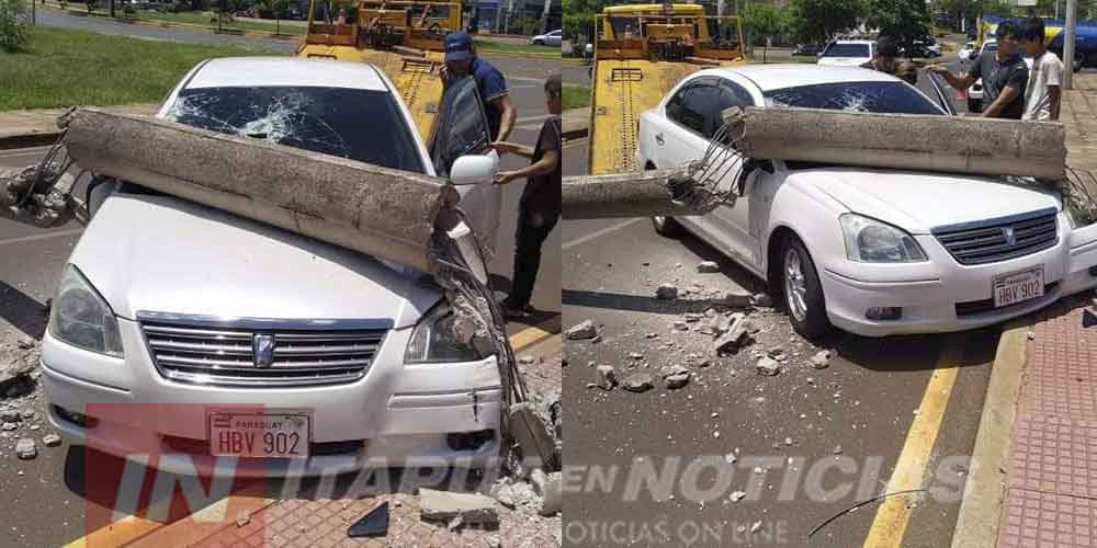 Estuvo involucrado un automóvil que ingresó a Mcal. Lopez desde Irrazabal con dirección a la Costanera de Encarnación. Aparentemente la conductora identificada como Ninfa Oliveira perdió el control por razones todavía desconocidas y terminó colisionando contra una columna del tendido eléctrico que a su vez cayó sobre su automóvil.