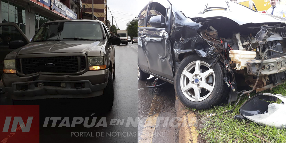 Un choque de vehículos se registró hace instantes sobre la Avda. Luis Irrazabal y 14 de mayo de la ciudad de Encarnación, protagonizado por una camioneta Ford guiada por Héctor Valentín Echegaray y un automóvil Toyota conducido por José Melgarejo.