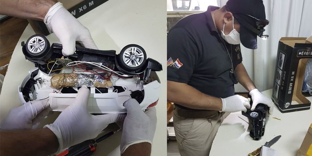 Las sustancias encontradas estaban envueltas con papel metálico, dentro de unos autos a control. La utilización de juguetes para el tráfico de estupefacientes, se está volviendo una técnica bastante empleada. Se estima se realizan a modo de prueba, como parte de unos ejercicios para traslado de cantidades más significativas de droga a Asia.