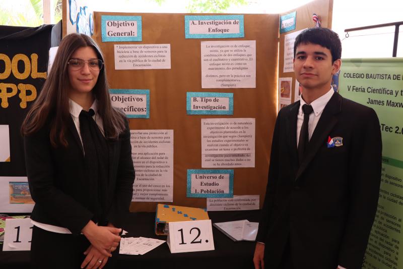 El primer puesto fue para Roxana Beatriz Bornett Cáceres y Fabrizio Ariel Brizuela Castro del Colegio Bautista de Encarnación. Instalaron un dispositivo a una bicicleta a base de sensores para reducir accidentes ciclistas.