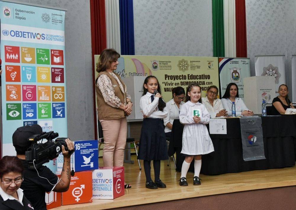 En el marco del Proyecto Educativo «Vivir en Democracia con Valores y Participación», tuvo lugar la elección de la Niña Gobernadora de Itapúa, iniciativa de la Oficina de la Primera Dama Silvana Abdo, sede departamental.