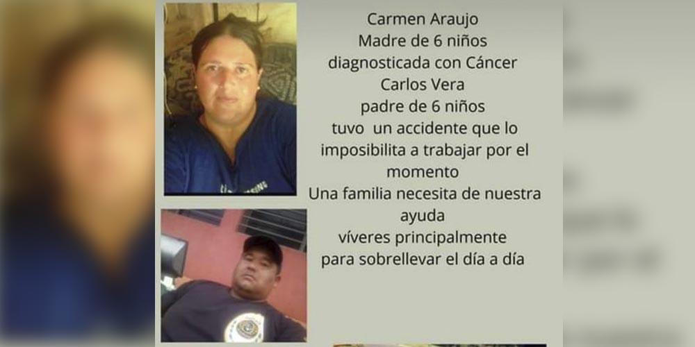 La mujer sufre de cáncer y estando en pleno tratamiento contra la enfermedad, su esposo sufrió un accidente que lo dejó en muletas, del cual todavía se está recuperando, quedando la familia sin el principal sostén de su hogar.
