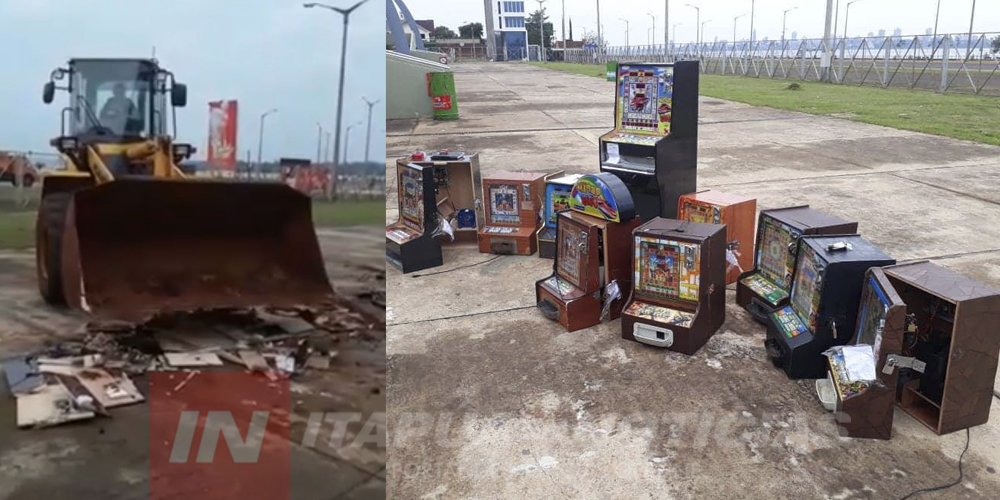 Municipalidad de Encarnación junto Agentes de Tránsito Municipal e integrantes de la Comisión Nacional de Juegos de Azar (CONAJZAR), este jueves procedieron a su destrucción pública.