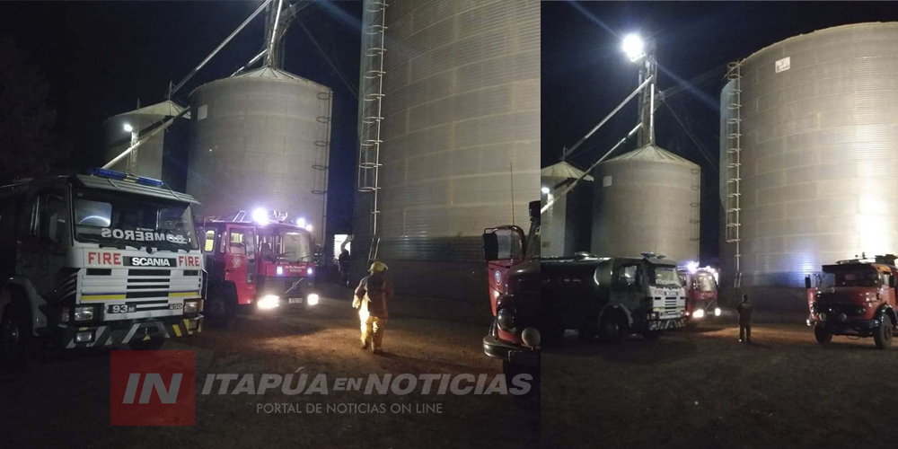 Bomberos Voluntarios de Natalio y Tomás Romero Pereira asistieron al lugar en forma inmediata y pudieron controlar el fuego antes que se propague en un silo que contenía 3.000.000 kg de soja aproximadamente.