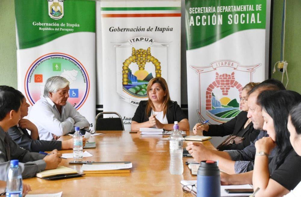 Una importante reunión interinstitucional de Coordinación de Acciones en la Gobernación de Itapúa a fin de dar continuidad al trabajo conjunto entre la Gobernación, a través de la Secretaría de Acción Social, junto con el Viceministerio de Asuntos Políticos, dependiente del Ministerio del Interior, la Fundación Visión y los municipios.