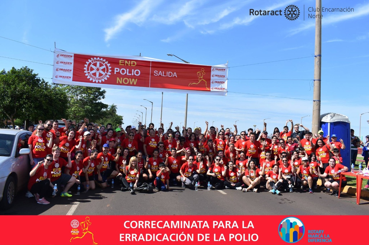 Los socios de Rotary Club Encarnación Norte estarán en la Costanera San José el domingo 3 de noviembre donde se realizará la 3ª edición de la correcaminata End Polio Now con la colaboración del Rotarack e Interac Club Encarnación Norte. El evento Se llevará a cabo en el estacionamiento del centro cívico que será el lugar de partida a partir de las 8:30 horas. La distancia a ser recorrida será de 5 km y se montarán puestos de hidratación en diferentes puntos del trayecto y un stand de frutas para los participantes.