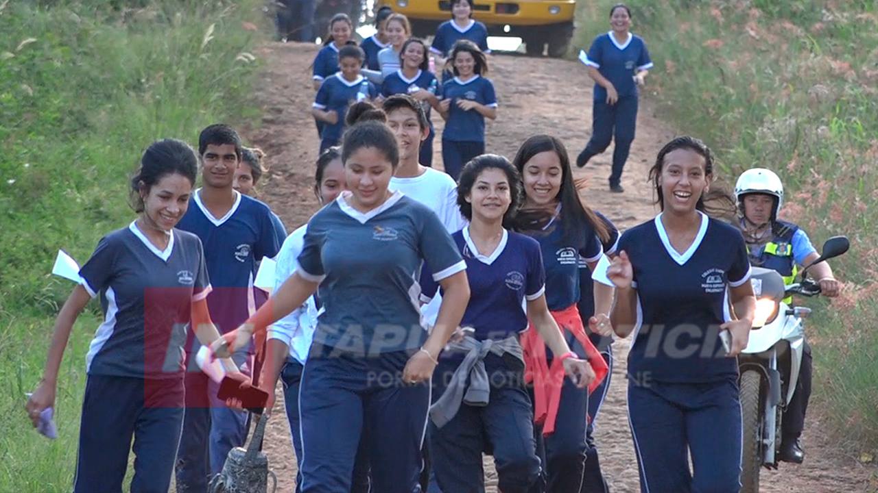 Estudiantes de la Escuela Nueva Esperanza del Barrio Chaipé de Encarnación, realizaron en la mañana este jueves una correcaminata en el marco de un proyecto de fomento del ejercicio físico y la salud.