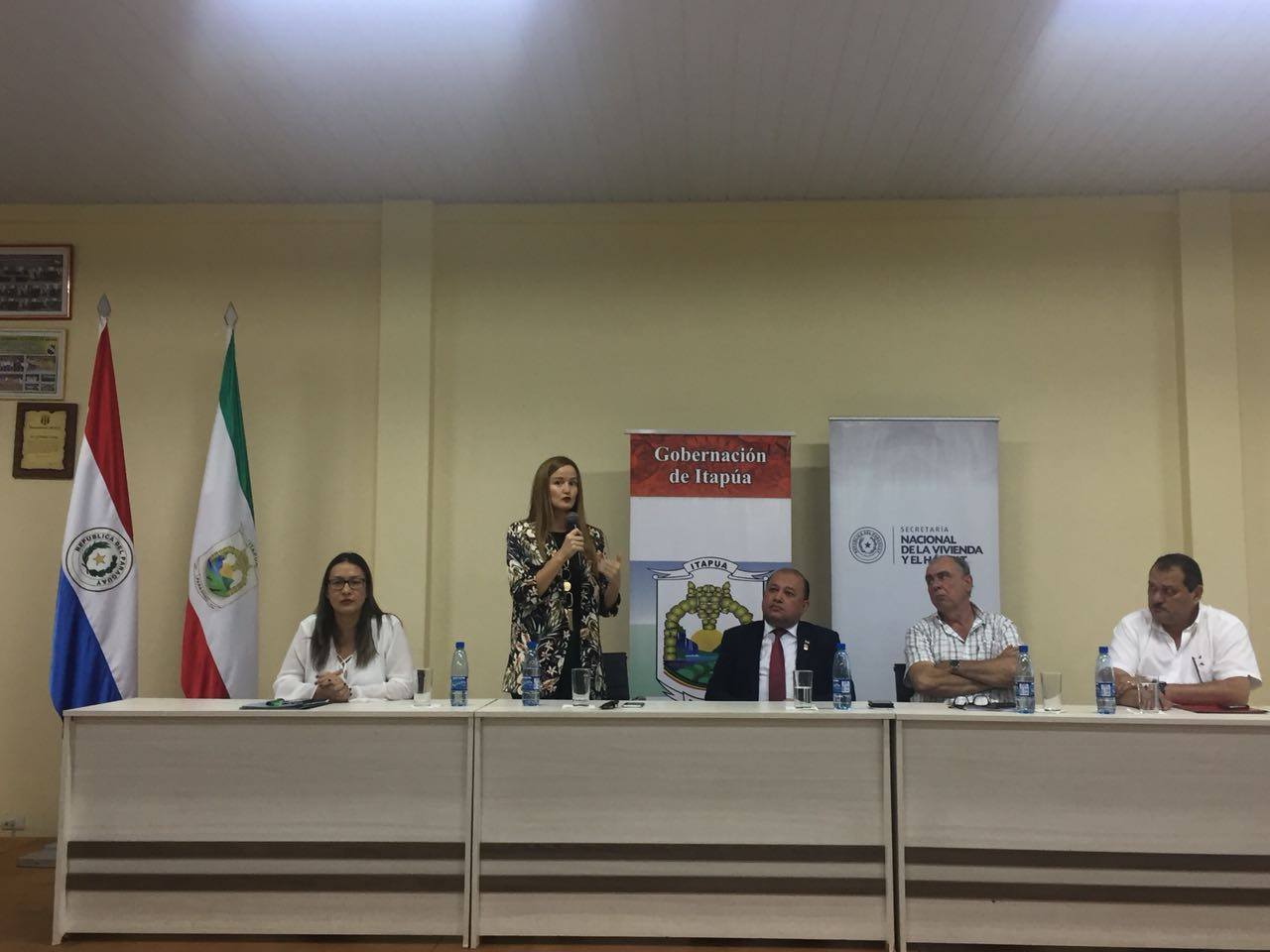 Siguiendo con los debates sobre la primera “Política Nacional de la Vivienda y el Hábitat”, la ministra Ing. Soledad Núñez presenta el documento base en el departamento de Itapúa, en la sede de la Gobernación del departamento.