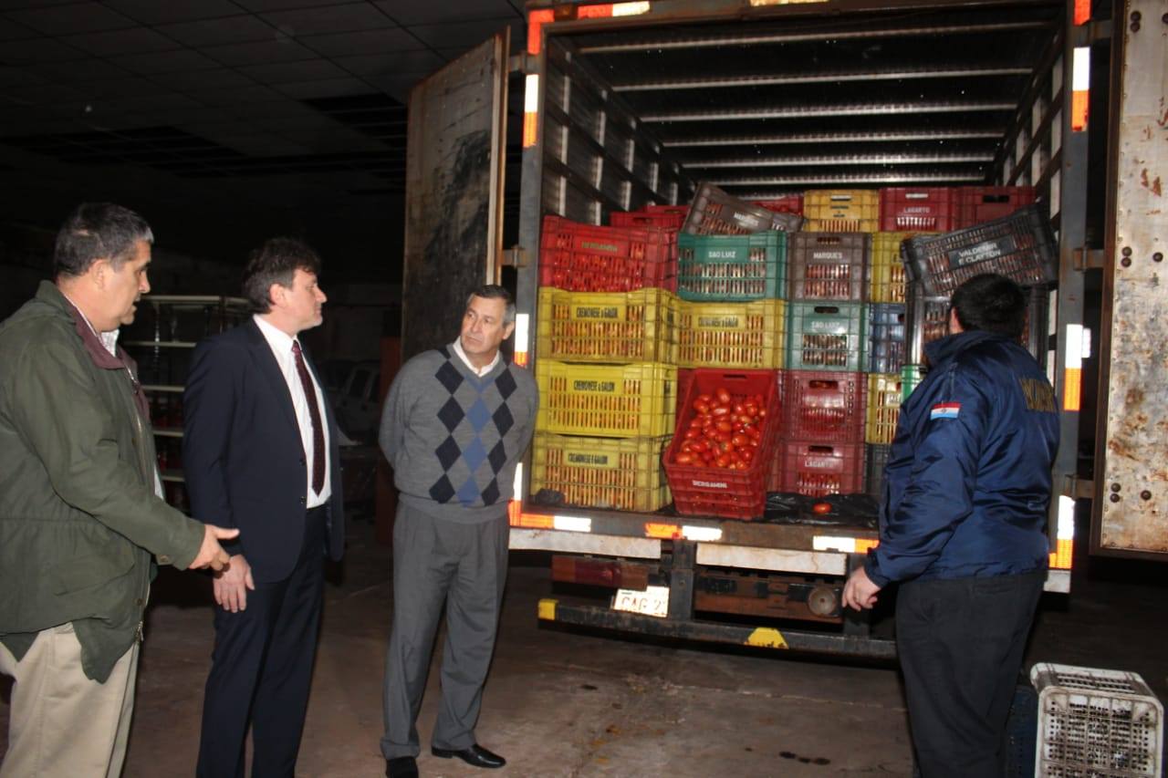 “Están llegando 30.000 kilos más que fue incautado en el kilómetro 40 de Alto Paraná”, añadió el ministro. Explicó que son todos productos frutihortícolas, fundamentalmente tomates, pero que también hay cebollas y papas.
