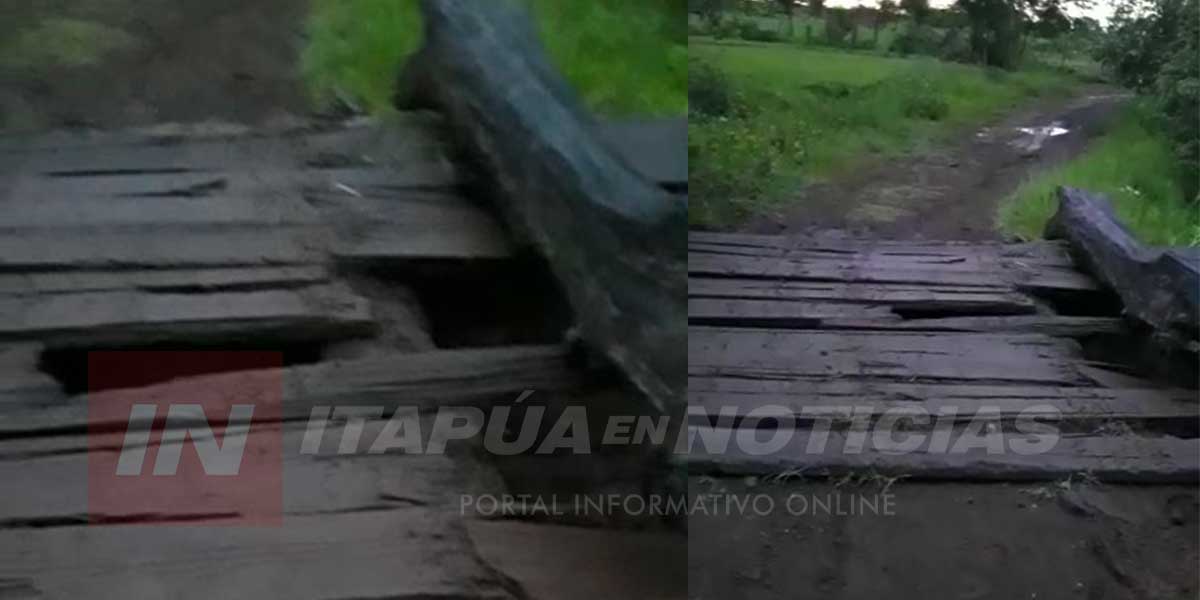 Un poblador de la zona del Barrio Cuatro Potrero de Encarnación se animó a realizar una denuncia pública mediante un videoaficionado a fin de solicitar la reparación de un puente de madera utilizado hace años por pobladores y que se encuentra en calamitoso estado.